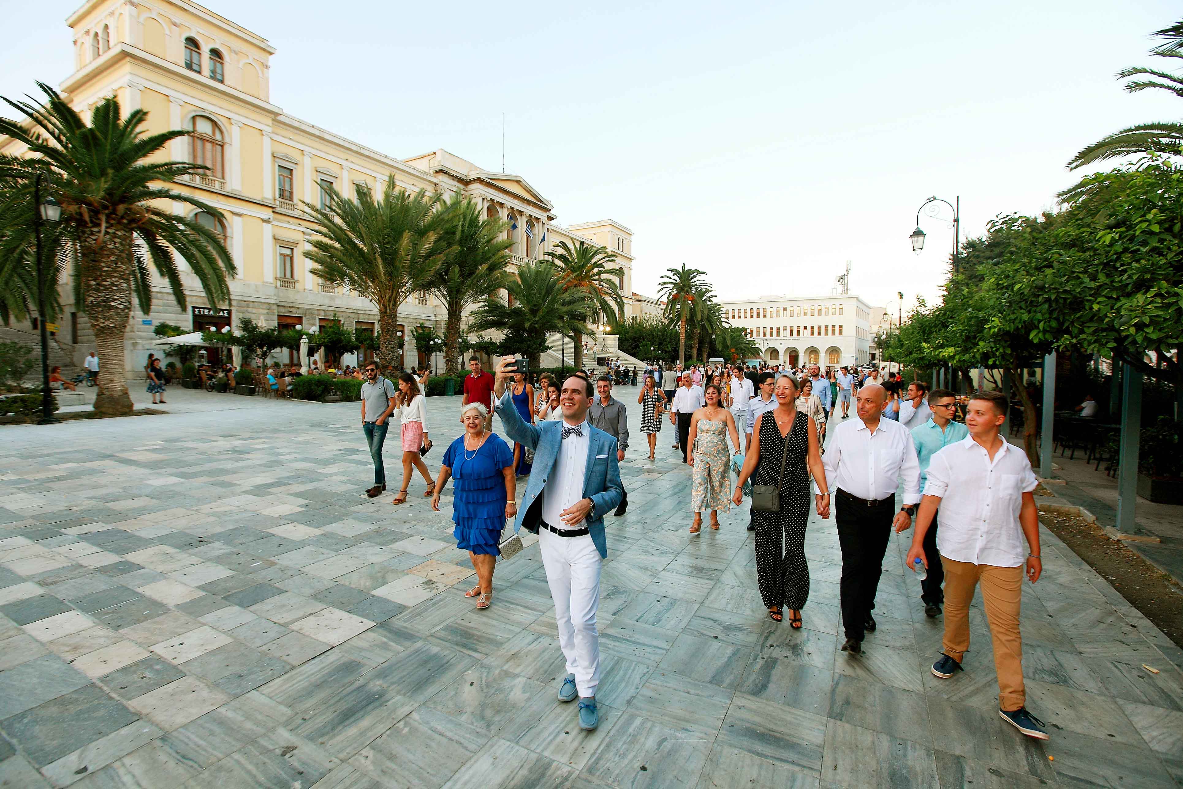 Just a day before at the impressive building of Ermoupolis Τown Hall, designed by Ernst Ziller in 1876, just few steps from Miaouli square, the civil wedding was a promising introduction.