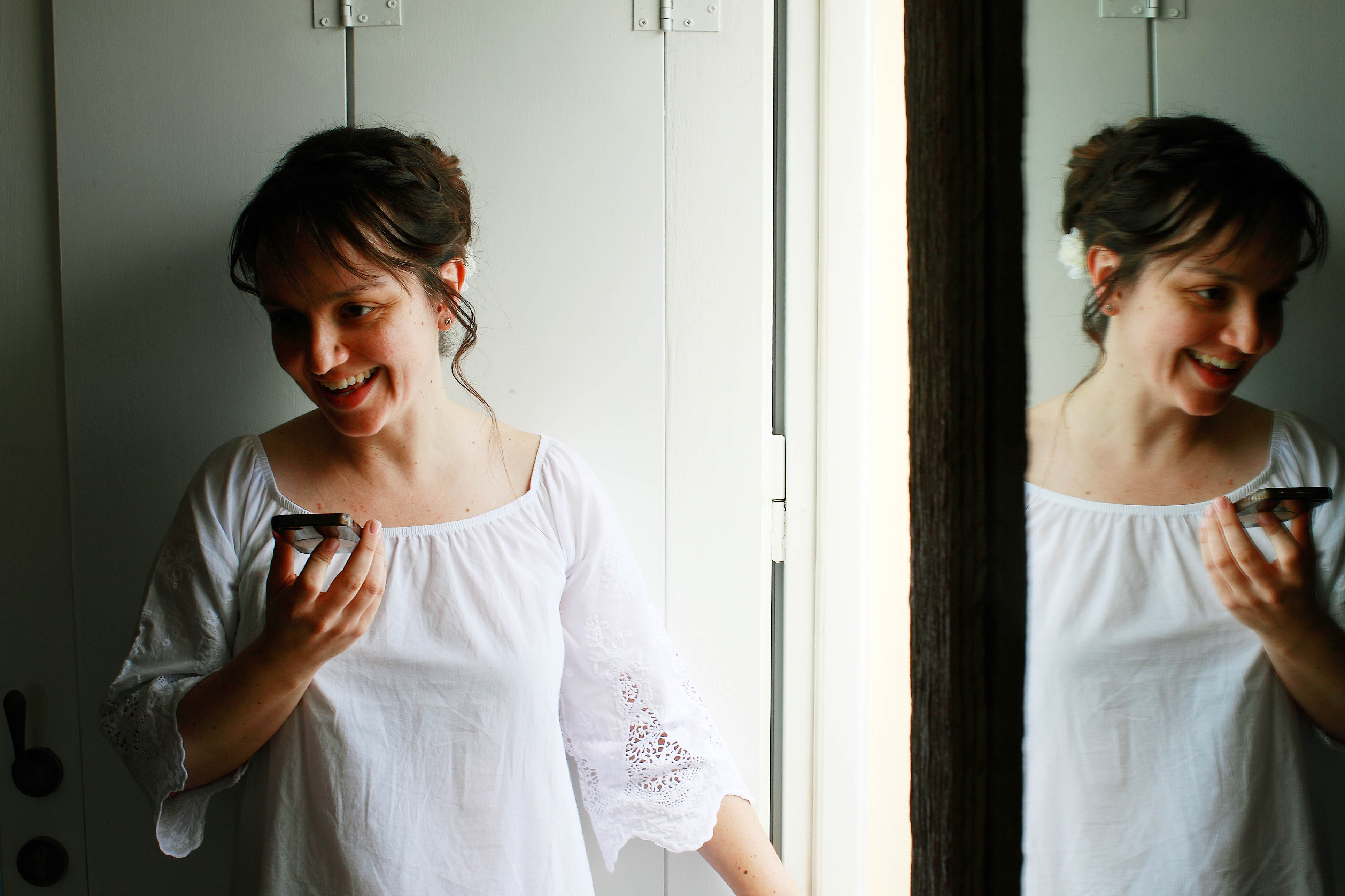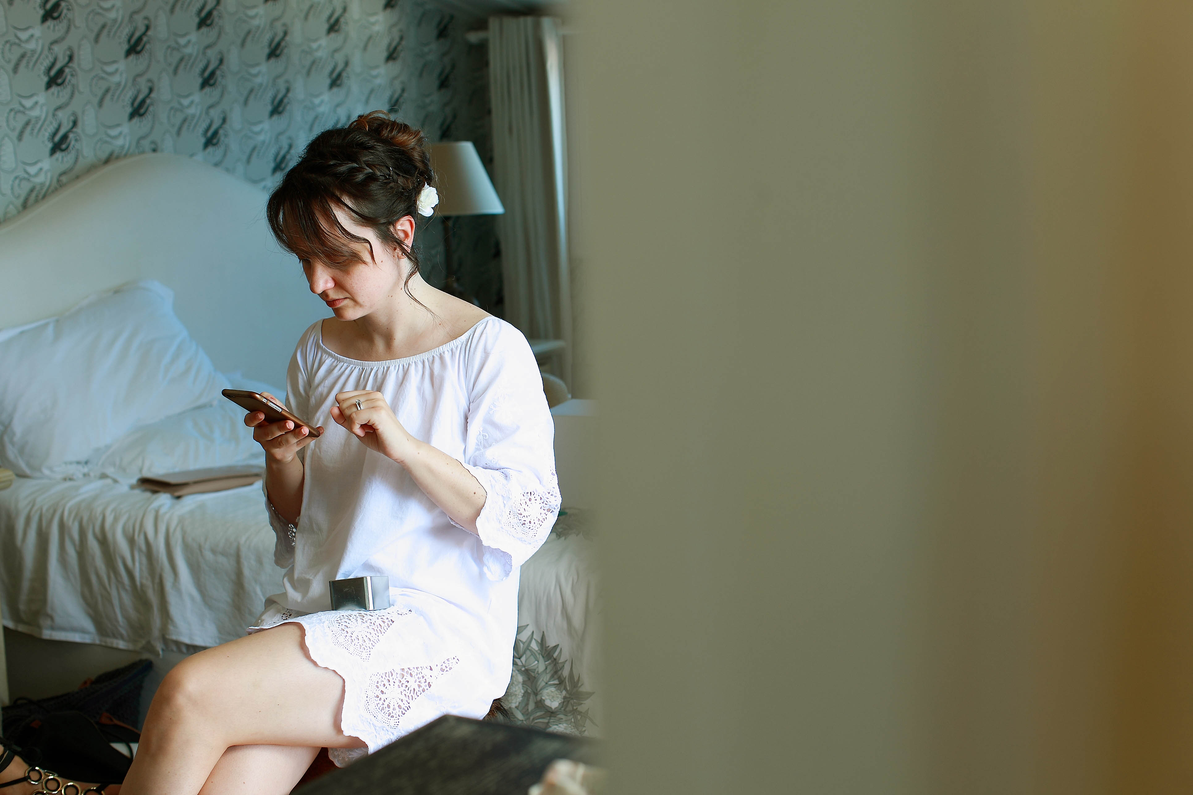 The wedding dress was waiting Katerina to be prepared for the big day.